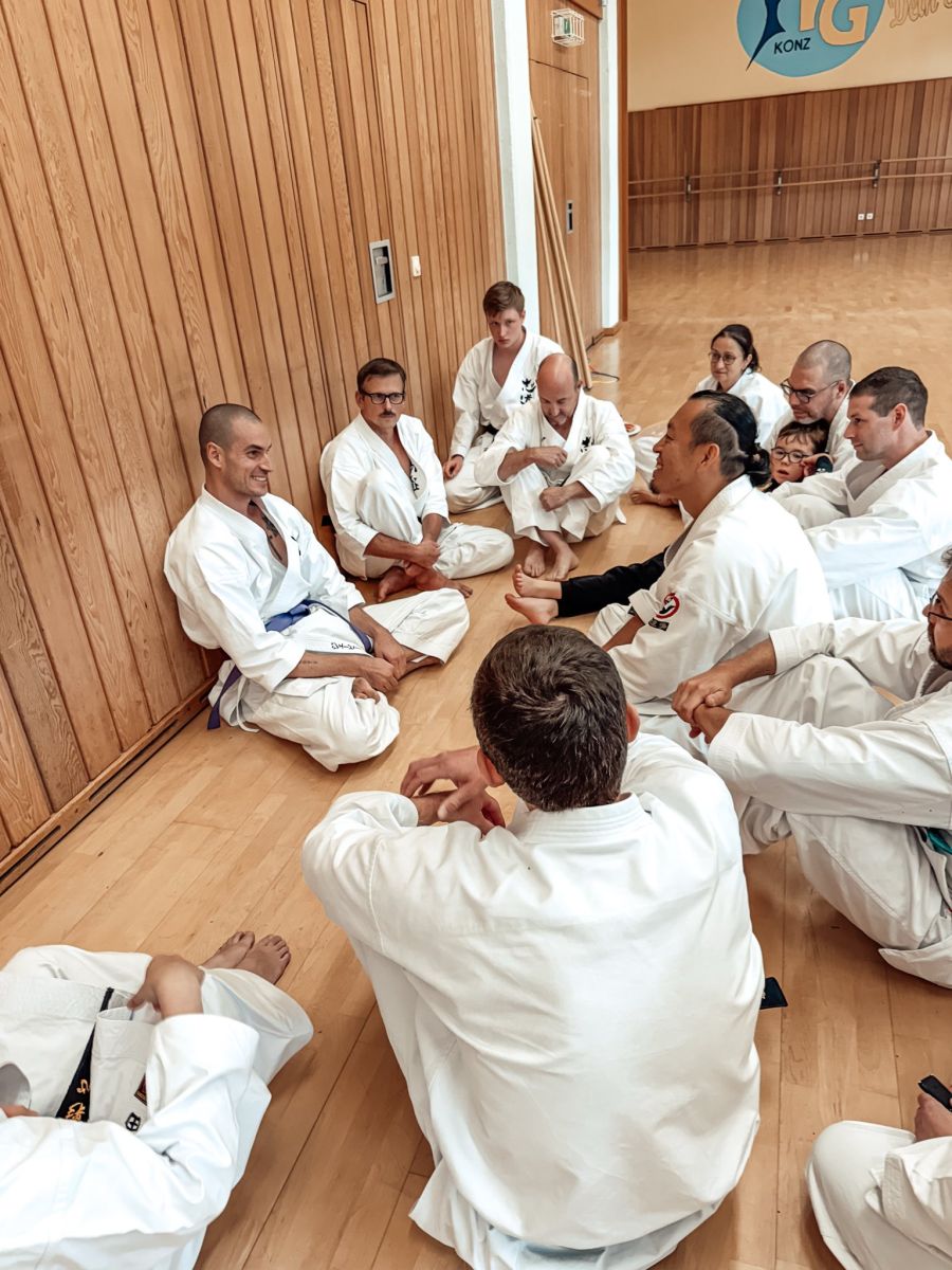 Ich liebe und genieße die Stimmung, die im Dojo herrscht. Bei der ruhigen Meditation am Anfang ist es, als würde sich eine Blase um mich legen. Dabei komme ich zur Ruhe und kann den Alltag hinter mir lassen. Die Übung selbst ist abwechslungsreich und auf vielen Ebenen herausfordernd. Am Ende lassen wir die Übung bei einem Bierchen ausklingen. Und ich frage mich, warum ich erst den inneren Schweinehund überwinden musste, bis zur nächsten Übung 😉